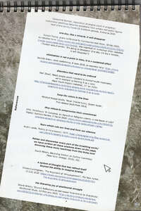 These paintings, grouped under the working title 'Separation Strategies', became part of the group exhibition Flat Earthers (the Engine Room, Wellington, July 2021, curated by Raewyn Martin). Scroll to far right of phrases below for a list of sources.